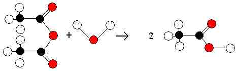 Man nehme stöchiometrische Mengen an Edukten und erhalte entsprechende Mengen an Produkten. Aber da das ganze ein Gleichgewicht ist, entstehen leider doch nicht 100% des erwarteten Produktes, sondern nur ein Bruchteil davon. Ziel ist also, das Gleichgewicht so zu verschieben, daß die größtmögliche Menge an Ester entsteht. Hier bietet sich das Essigsäureanhydrid an: Es bindet das Wasser und reagiert dabei zu Essigsäure. Das Gleichgewicht wird durch zwei Effekte nach rechts verschoben: Erniedrigung des Wassergehaltes, Erhöhung der Menge an Essigsäure.